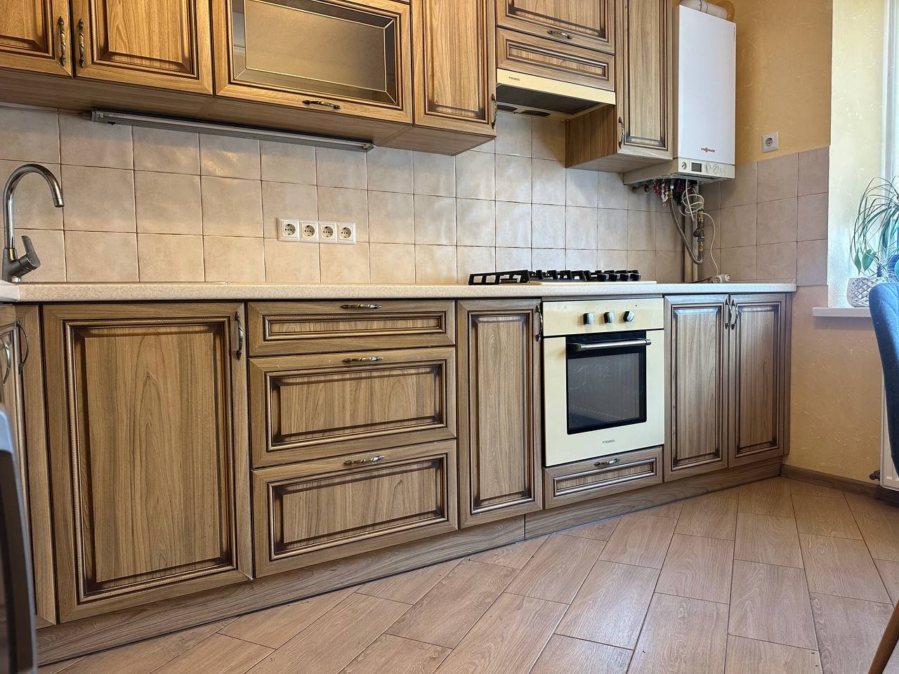 Велика кухня, роздільні кімнати, лоджія з панорамними вікнами.